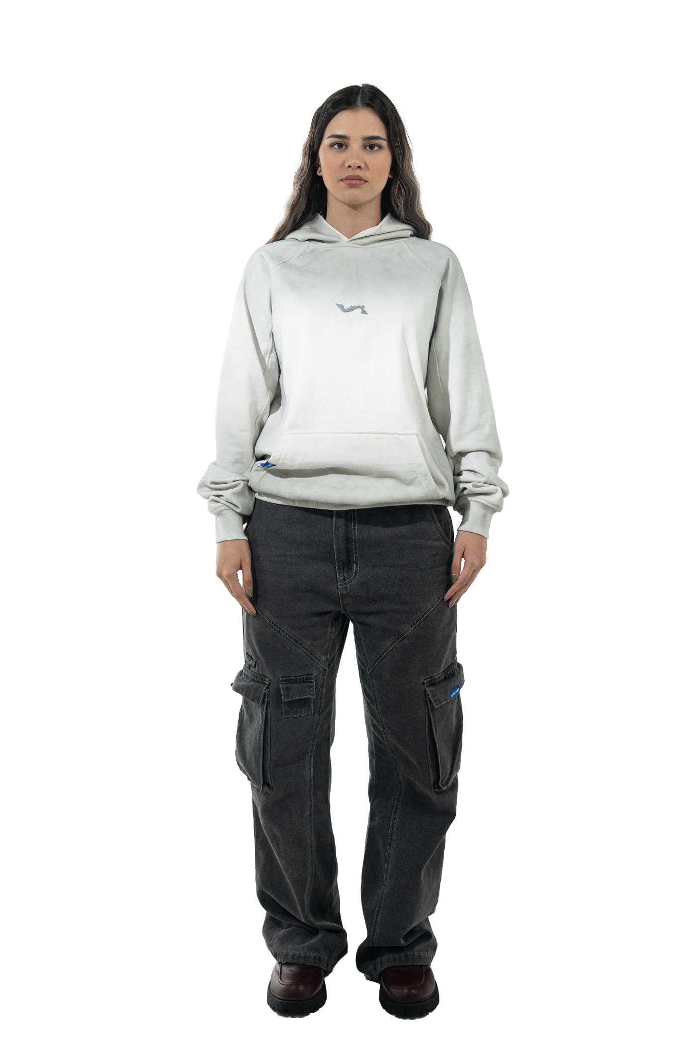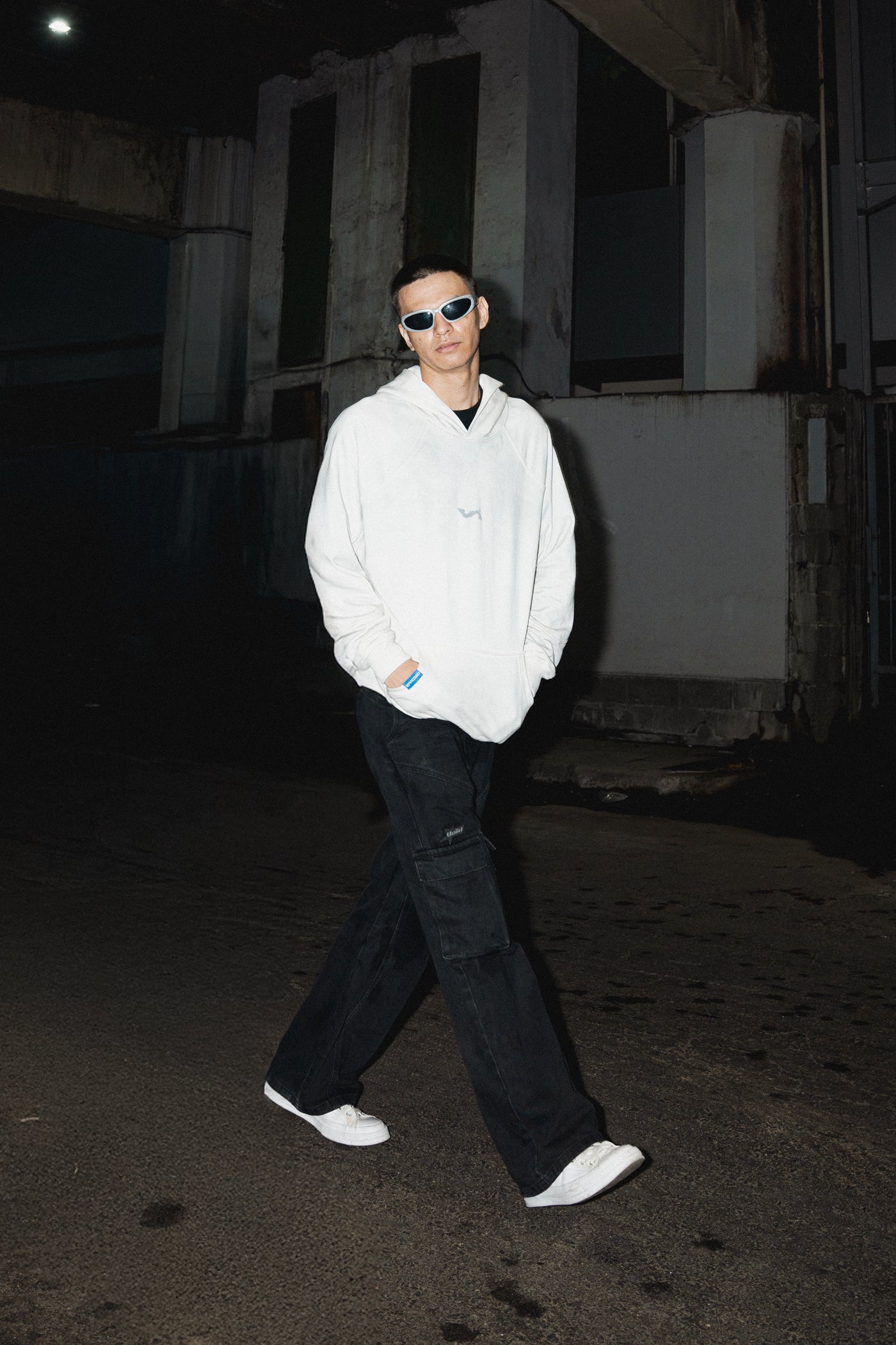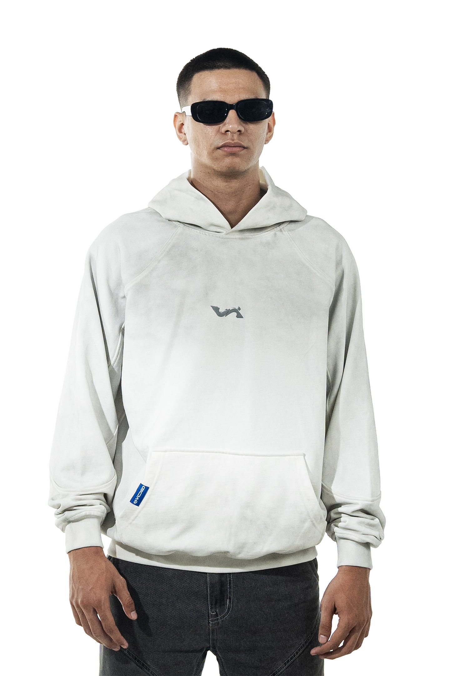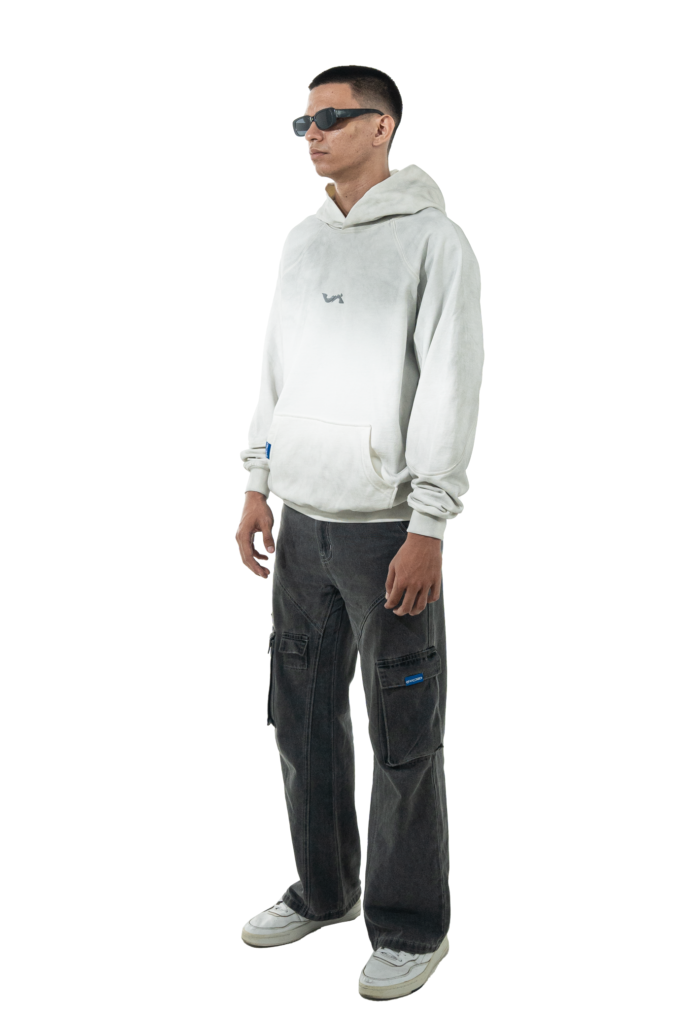This hoodie is withe fade washed with a oversize boxes style and with two print techniques screen, print and puff print to make aesthetic style